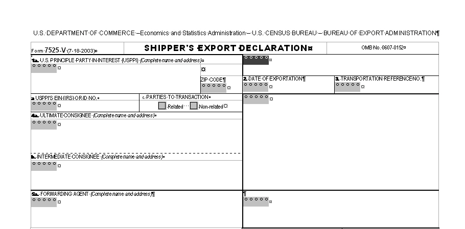 Partial View of the Shipper's Export Declaration 7525-V Form Template: